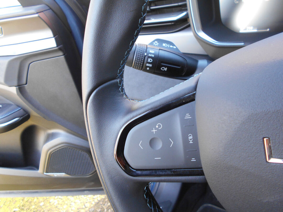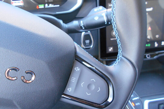 Leather steering wheel with touch controls for cruise and audio